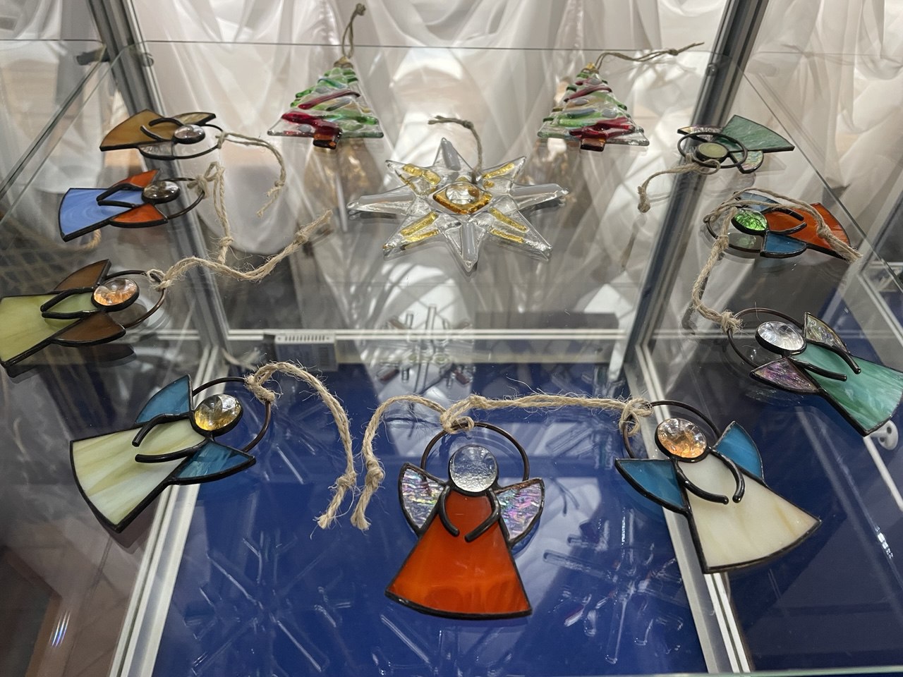 Сакральні і патріотичні образи, створені в графічній техніці,- своєрідне мереживо лінії і площини. Воно примушує глядача зупинитися та поринути у таїну душі митця, розплутати загадкову нитку думки, що творила цей простір. А вироби гутного скла та вітражу наповнюють приміщення світлом і кольором, радістю, гармонією. У виставці беруть участь близько сотні творів у техніці графіки, олійного живопису, гутного скла та вітражу.